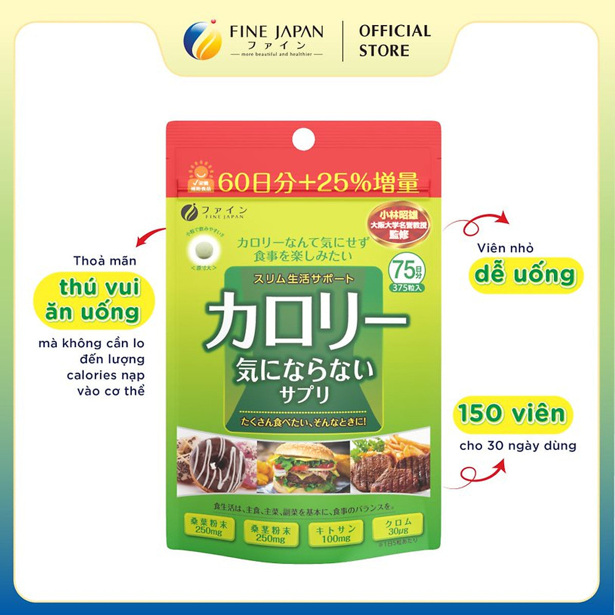 Viên Uống Giảm Cân giãm hấp thu calo và chất béo với chiết xuất dâu tằm, awn ngon không lo tăng cân Calories FINE JAPAN 75 ngày
