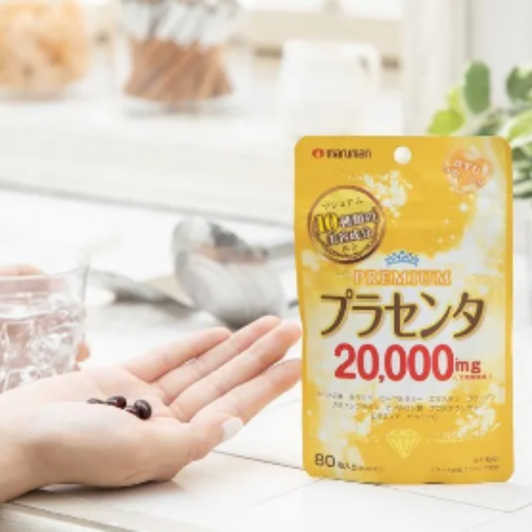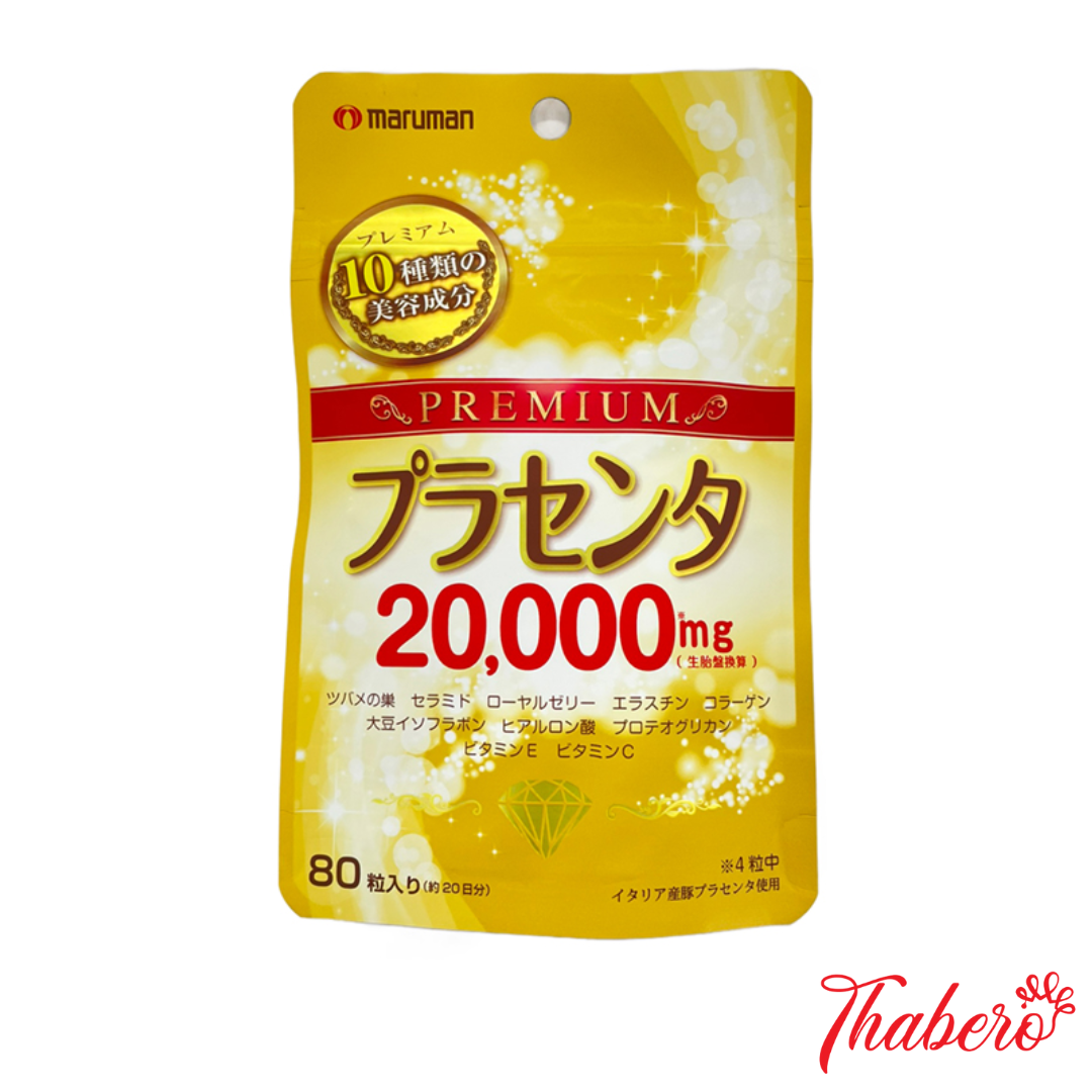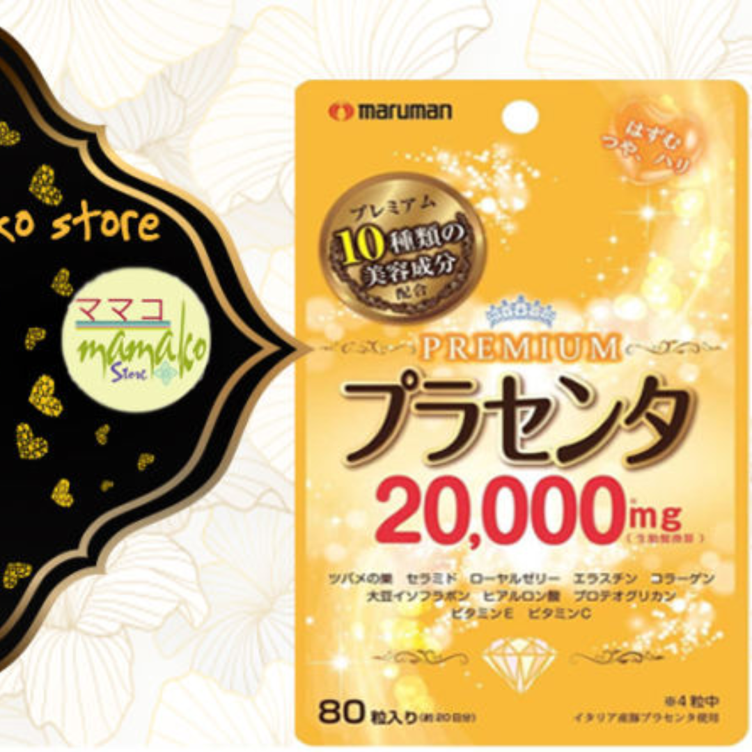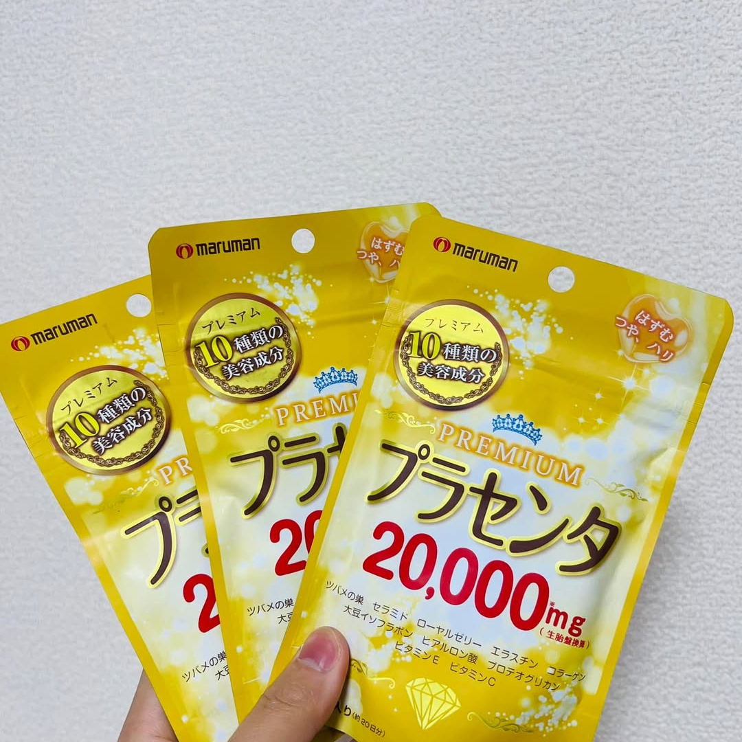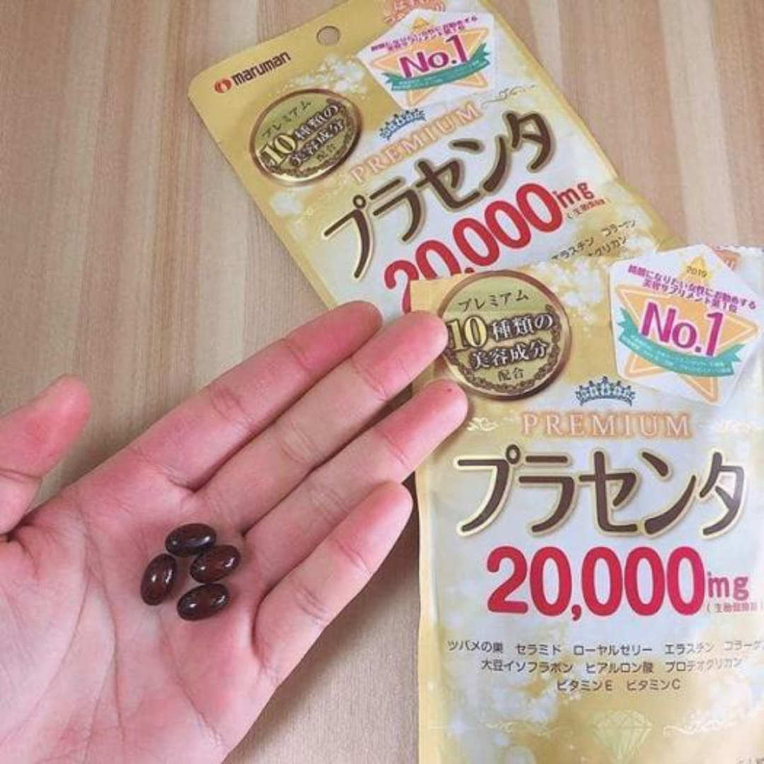 Tên sản phẩm: Viên Uống Placenta kết hợp yến sào , sửa ong chúa giúp phục hồi da lảo hoá giãm nhăn và căng bóng da   Maruman Premium Placenta 20,000mg - HSD: tháng 7/ 2026