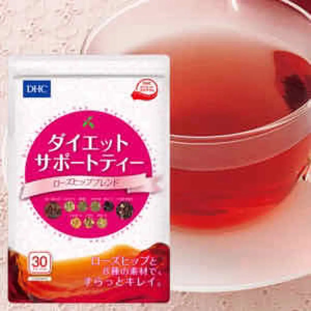 Trà hỗ trợ ăn kiêng DHC (DHC Diet Support Tea) (Rosehip Blend). Đây là loại trà không chứa calo và caffeine, được pha trộn từ nụ tầm xuân và 8 thành phần khác để hỗ trợ quá trình ăn kiêng và làm đẹp. ( 9 vị )