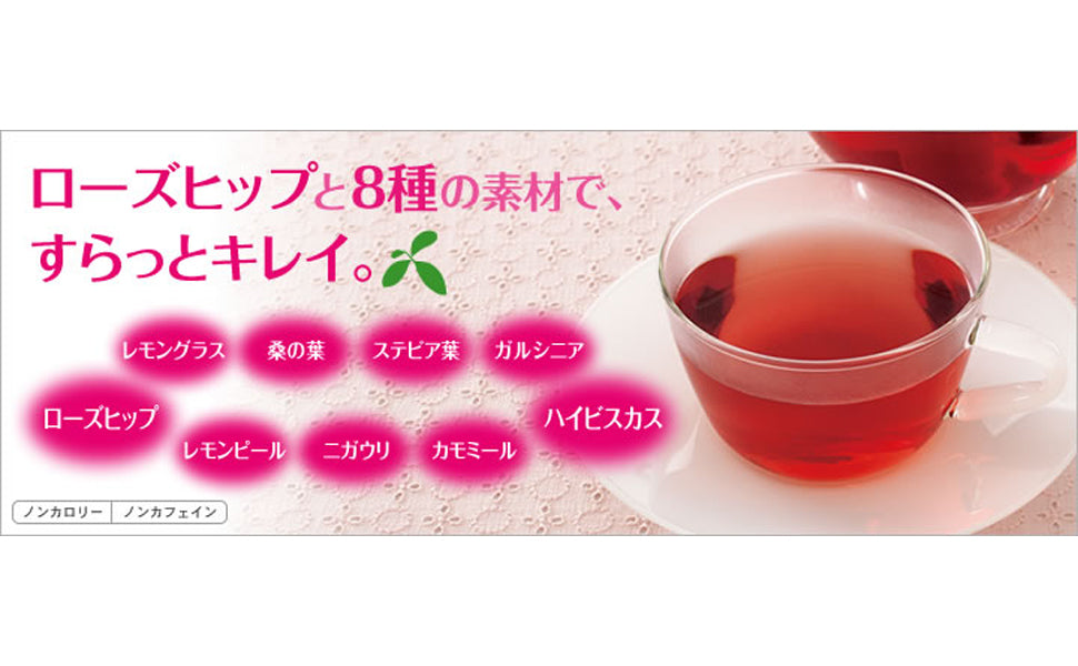 Hỗ trợ làm đẹp và giữ dáng (スリムとキレイ): Sự kết hợp của Rosehip, Hibiscus và các loại thảo mộc khác nhằm hỗ trợ mục tiêu này.