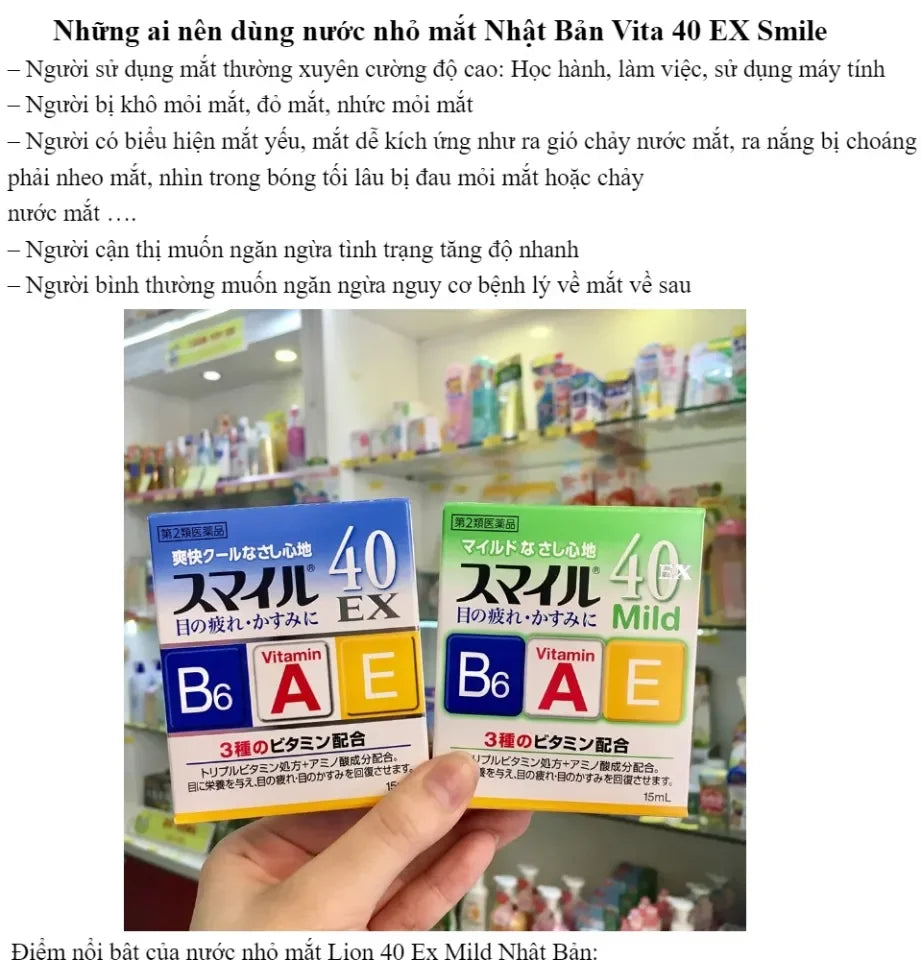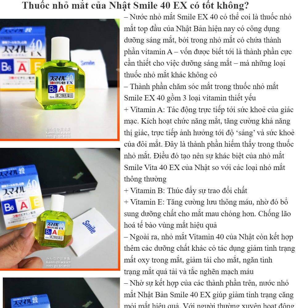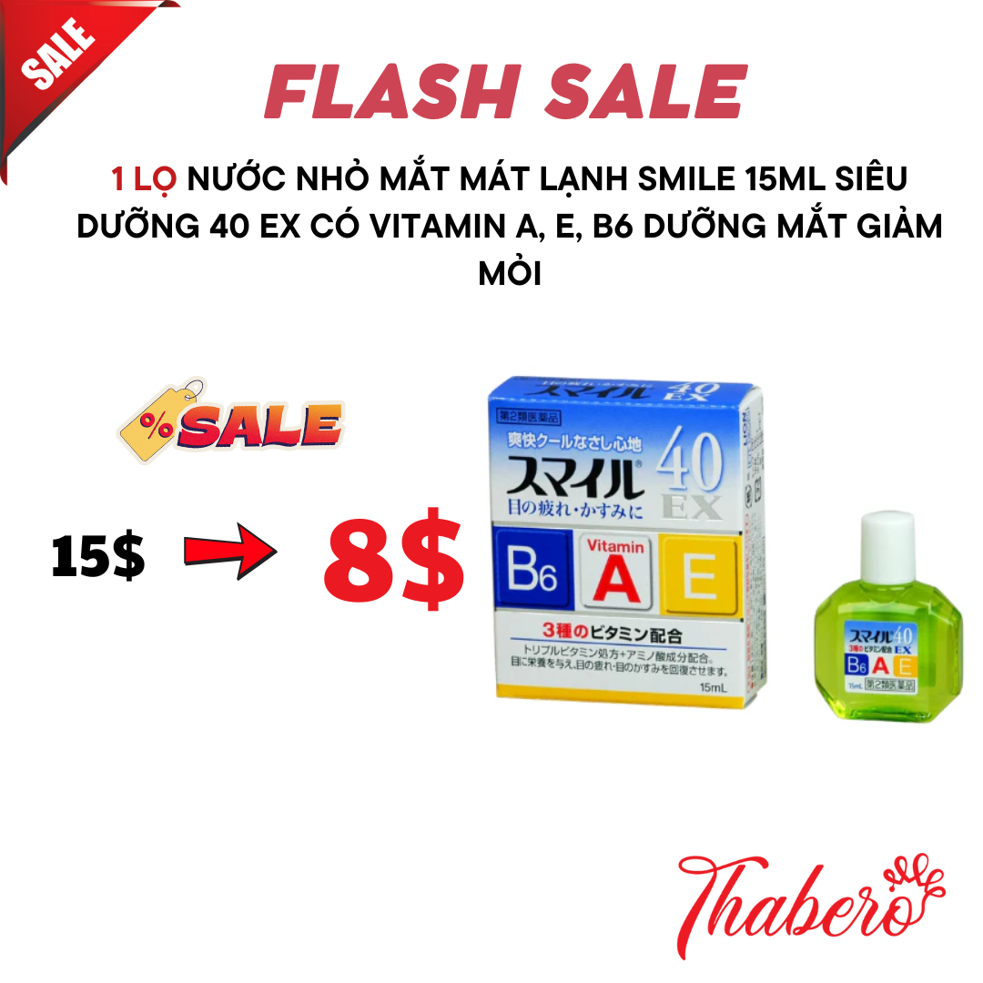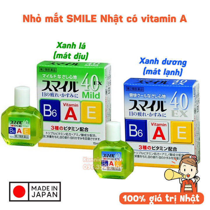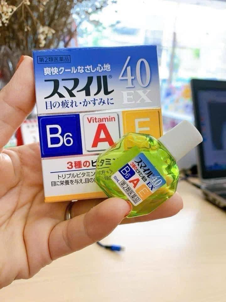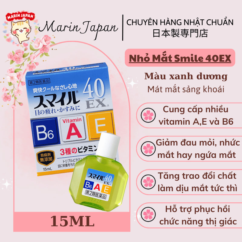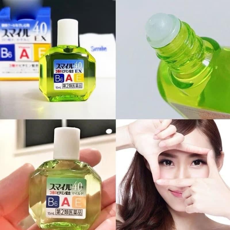 Tên sản phẩm:Nước nhỏ mắt mát lạnh SMILE 15ml siêu dưỡng 40 EX có vitamin A, E, B6 dưỡng mắt giảm mỏi Nhật Bản