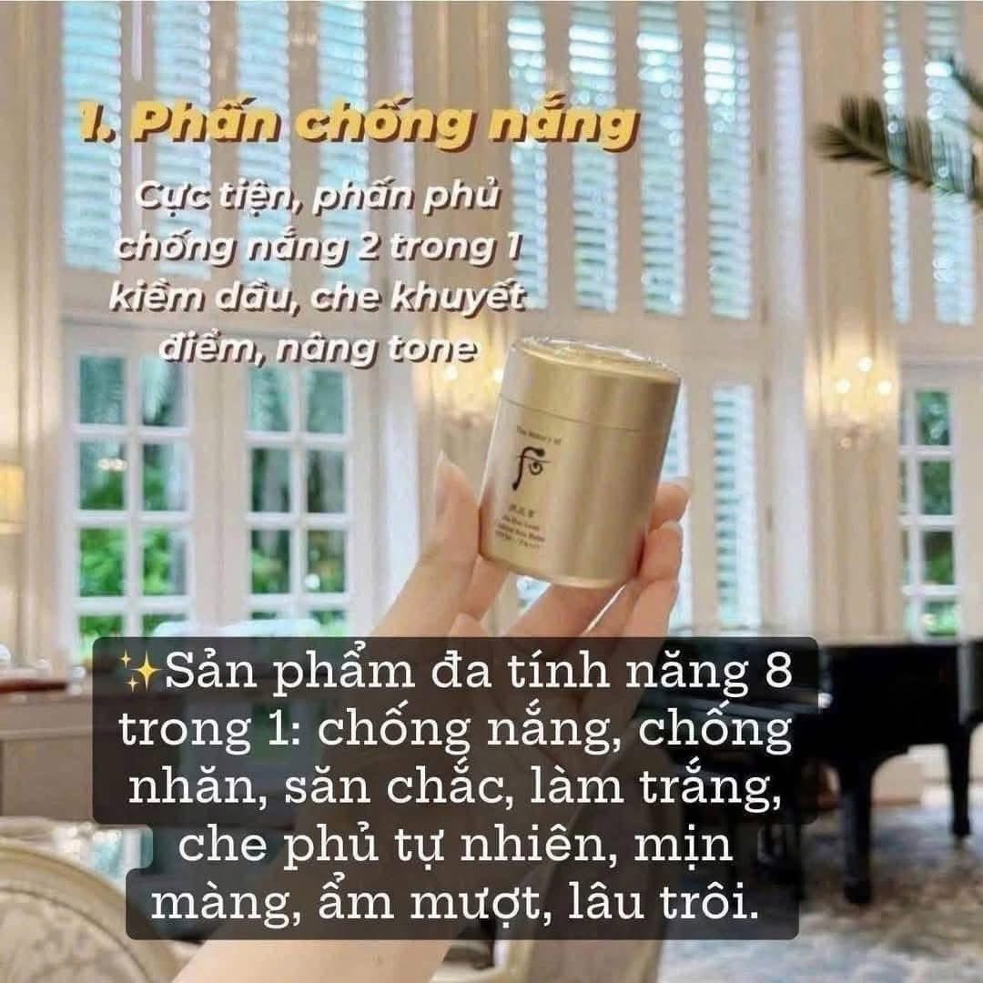 Sản phẩm đa tính năng. Hiện đại và thông minh nhất trong dòng trang điểm của whoo. Chống nắng kết hợp dưỡng trắng và chống nhăn. Ngoài ra còn Là sự kết hợp hoan hảo giữa kem lót và kem nền trang điểm