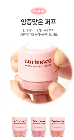 Đây là dòng sản phẩm phấn má hồng dạng bột đến từ thương hiệu mỹ phẩm Hàn Quốc Coringco (thường được biết đến với tên gọi Coréelle Coringco). Sản phẩm nổi bật với thiết kế nhỏ gọn, đáng yêu và khả năng tạo màu má tự nhiên.
