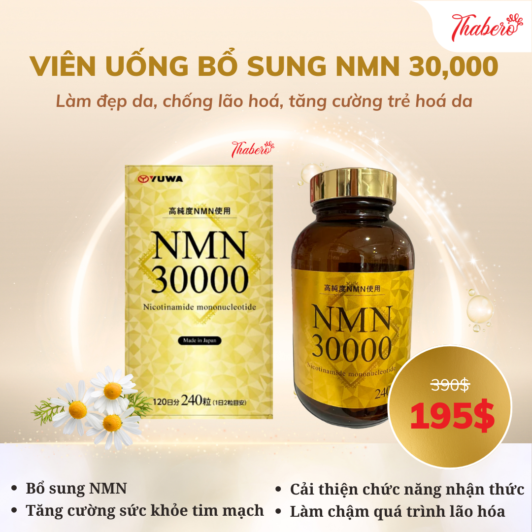 Viên uống NMN 30,000 đẹp da, chống lão hoá, tăng cường trẻ hoá da Yuwa Nhật Bản