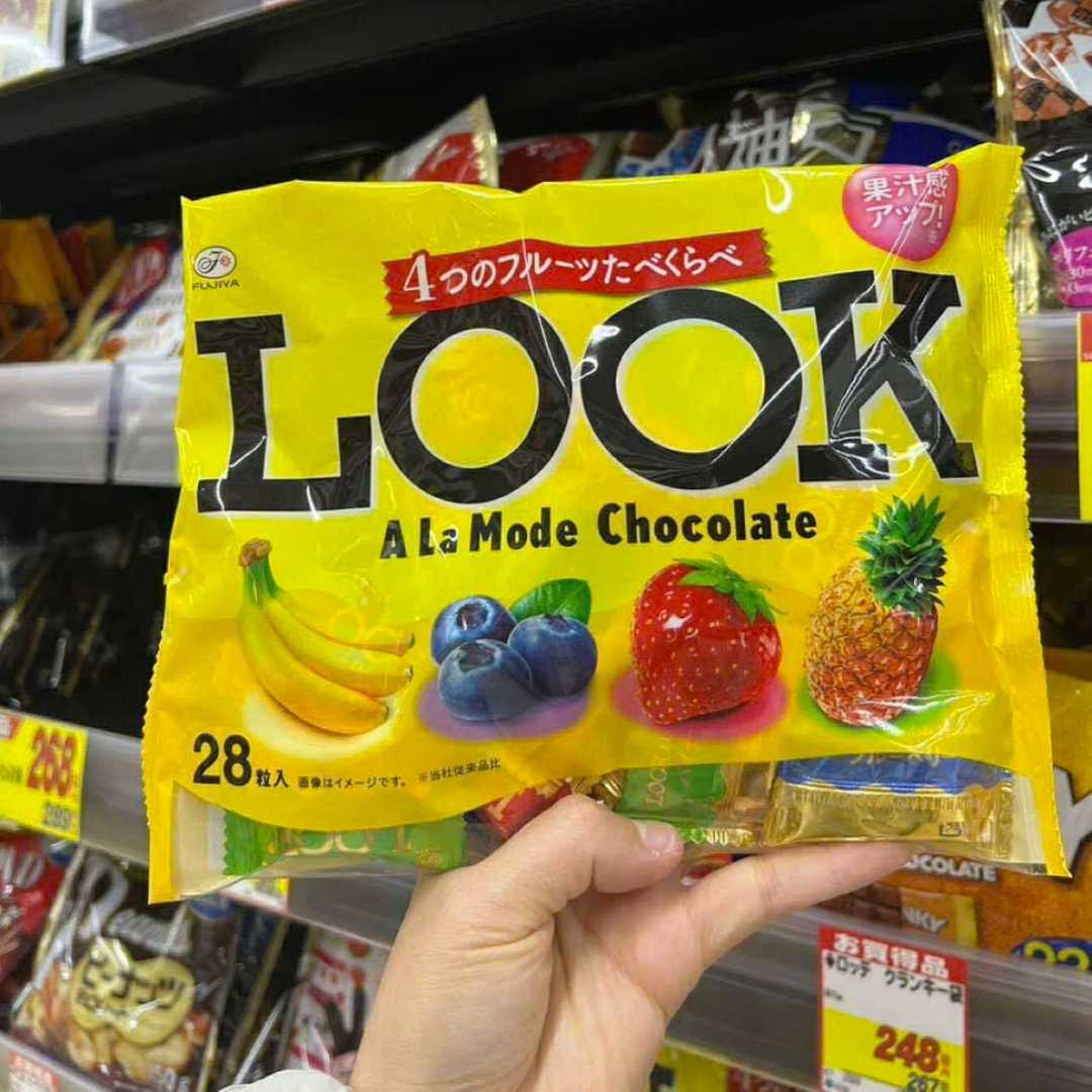 Sôcôla LOOK A La Mode là một trong những sản phẩm cổ điển và được yêu thích nhất của thương hiệu Fujiya, ra đời từ năm 1962. Gói lớn 28 viên này là "phiên bản gia đình" (family pack), cho phép bạn thưởng thức 4 hương vị kem trái cây khác nhau được bọc trong lớp sôcôla sữa mềm mịn.