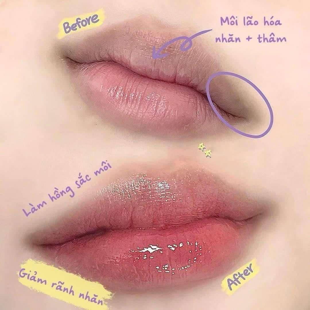 • Cải thiện thâm môi: Sử dụng thời gian dài giúp môi đỡ sạm, trở nên hồng hào, căng mọng.