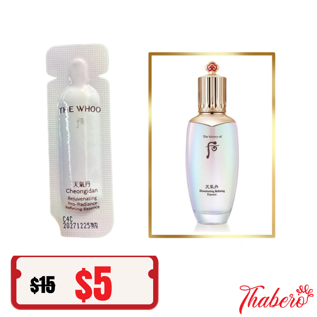 Tên sản phẩm:Sample Tinh Chất Trẻ Hóa, Dưỡng Trắng Sáng Da Whoo Cheongidan Illuminating Refining Essence - nước thần hoa hiên (30 tép x 1ml = 30ml)