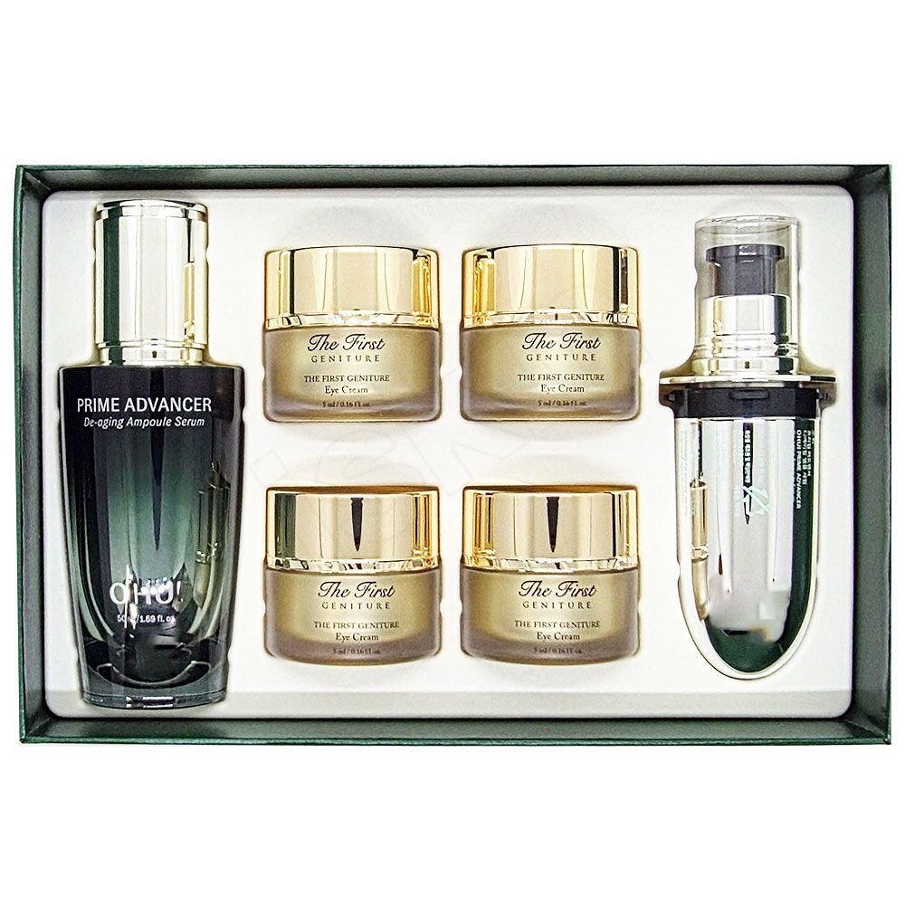 Set Tinh chất chống lão hóa sớm đa tầng OHUI Prime Advancer De-Aging Ampoule Serum Tặng 4 Kem Mắt Ohui The First 5ml.