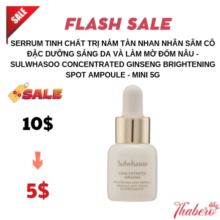 Tên sản phẩm:Serrum Tinh Chất trị nám tàn nhan Nhân Sâm Cô Đặc Dưỡng Sáng Da Và Làm Mờ Đốm Nâu - SULWHASOO CONCENTRATED GINSENG BRIGHTENING SPOT AMPOULE - MINI 5g