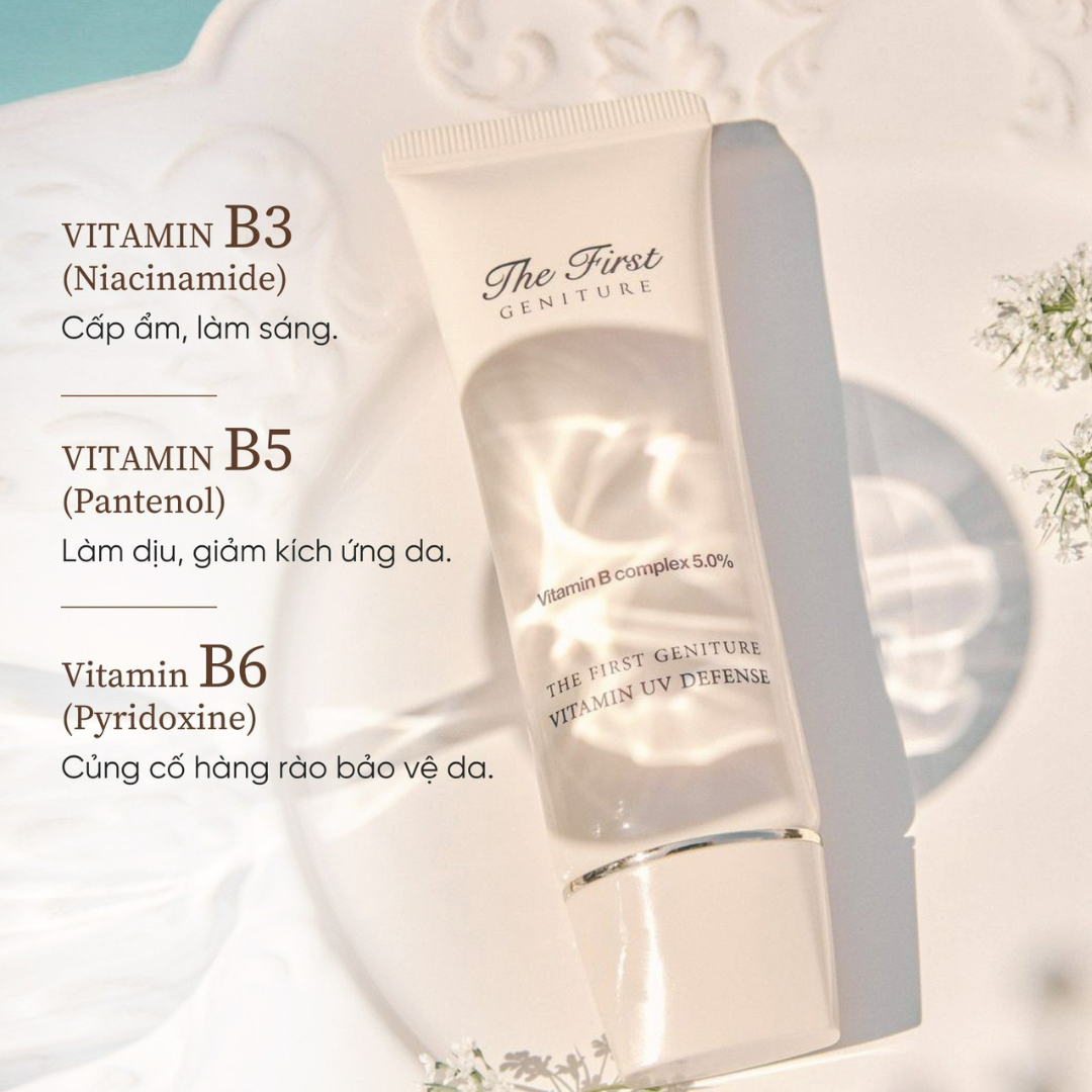 Vitamin UV Defense không chỉ bảo vệ da hiệu quả với khả năng chống tia cực tím mạnh mẽ, mà còn chứa phức hợp vitamin B chứa đến 5% vitamin B3, B6 và B5 giúp làm dịu da một cách thoải mái.