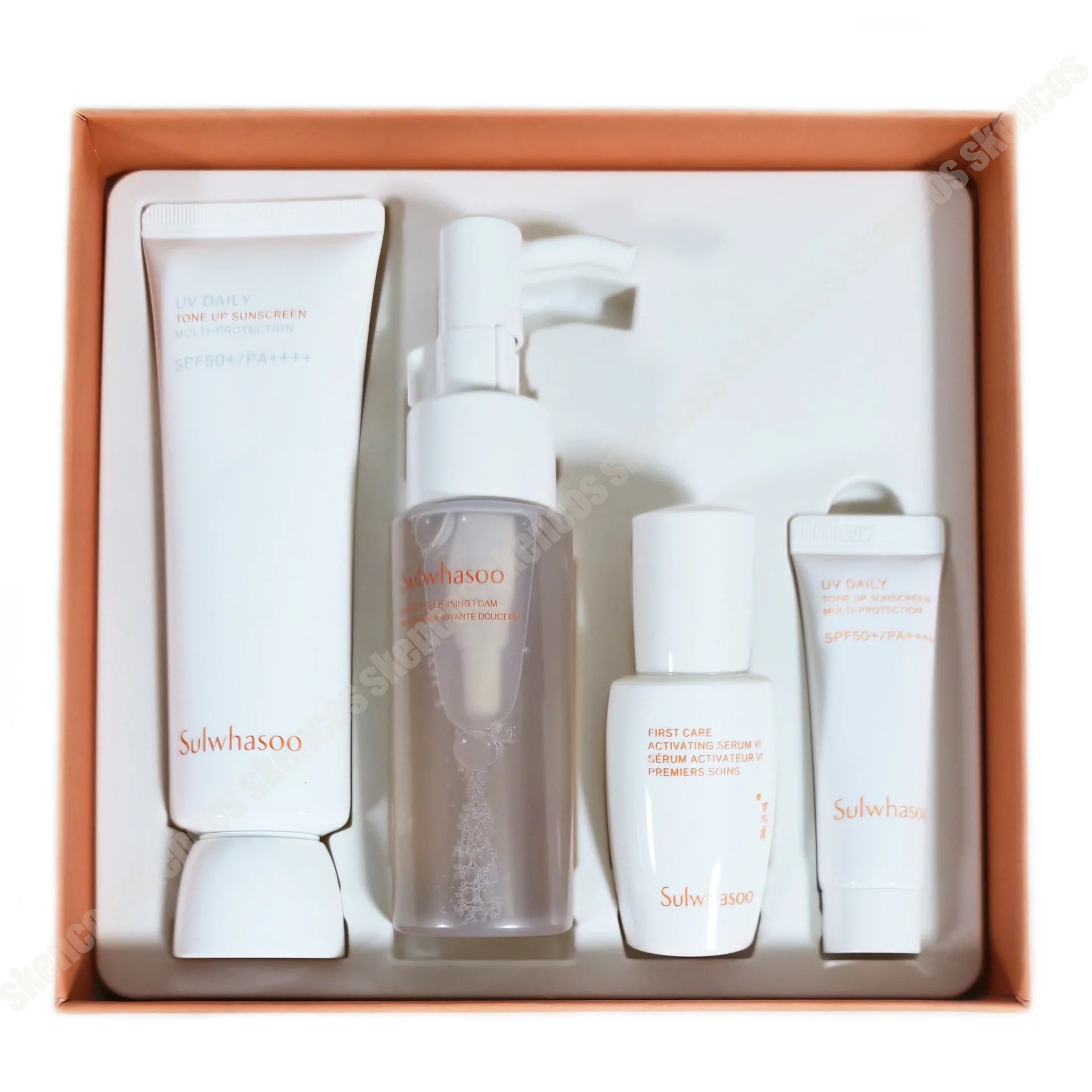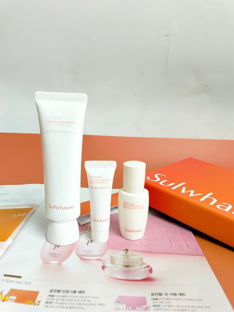 Set Kem Chống Nắng Nâng Tone Trắng Da Sulwhasoo UV Daily Tone Up Sunscreen Multi Protection SPF50+++ là một bộ sưu tập các sản phẩm chăm sóc da cao cấp đến từ thương hiệu Sulwhasoo nổi tiếng của Hàn Quốc. Bộ sản phẩm tập trung vào việc bảo vệ da khỏi tác hại của tia UV, đồng thời cung cấp độ ẩm và giúp làm sáng da.