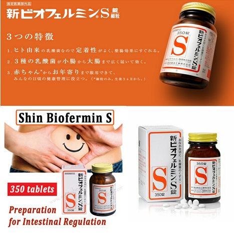 - Viên uống Shin Biofermin S là sản phẩm hỗ trợ tiêu hóa nổi tiếng tại Nhật Bản, có thành phần chính là ba loại lợi khuẩn đường ruột: Streptococcus faecalis, Lactobacillus acidophilus và Bifidobacterium. Các loại lợi khuẩn này có những công dụng đặc biệt trong cải thiện sức khỏe hệ tiêu hóa: