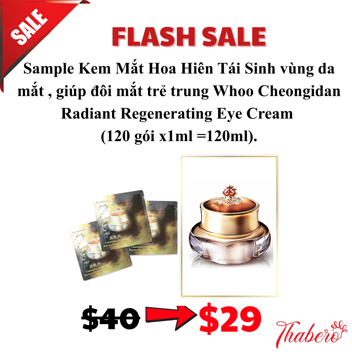 Tên sản phẩm: Sample Kem Mắt Hoa Hiên Tái Sinh vùng da mắt , giúp đôi mắt trẻ trung Whoo Cheongidan Radiant Regenerating Eye Cream (120 gói x1ml =120ml)