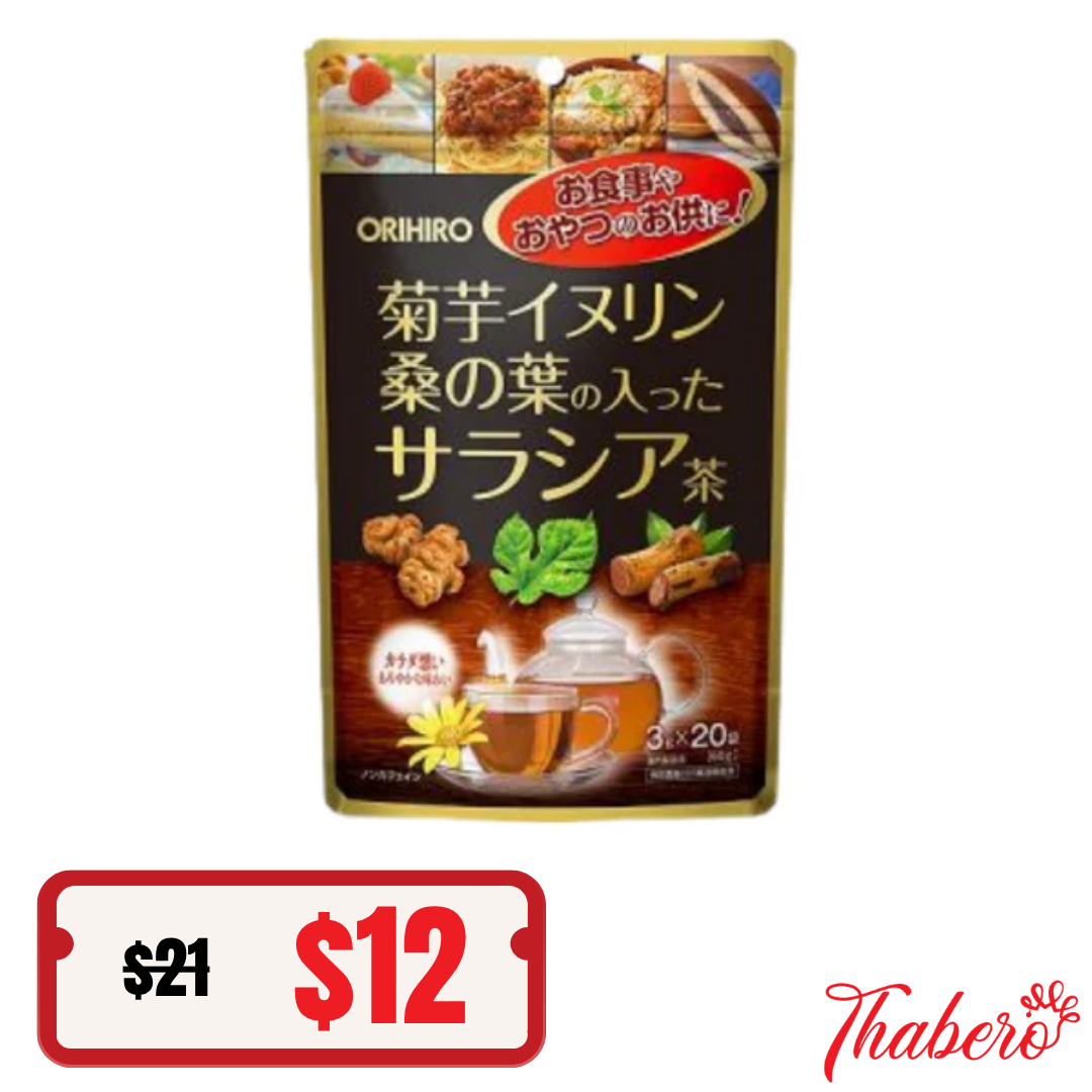 Tên sản phẩm: Trà Cúc Vu Dâu Tằm Atiso Salacia Hỗ Trợ Giảm Cân giải độc mát gan Orihiro 20 Gói .