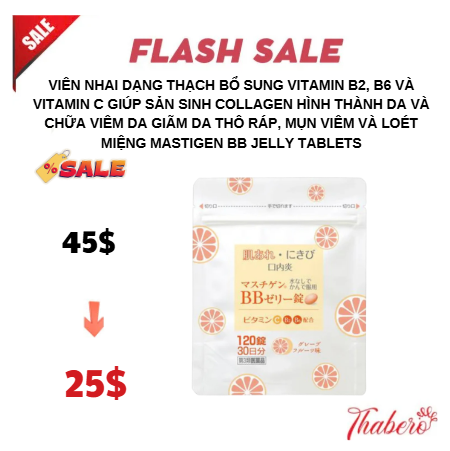 Tên sản phẩm: Viên nhai dạng thạch bổ sung Vitamin B2, B6 và Vitamin C giúp sản sinh collagen hình thành da và chữa viêm da giãm da thô ráp, mụn viêm và loét miệng   Mastigen BB Jelly Tablets