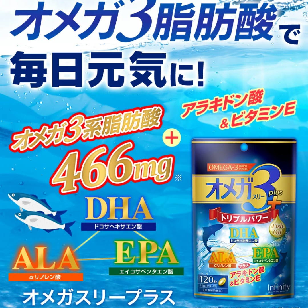 Viên Uống Bổ Sung Omega 3 Plus gíup bổ mắt, khoẻ khớp, sạch mạch máu , bổ nảo, đẹp da (DHA, EPA, ALA) Infinity Nhật Bản